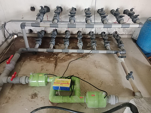 A Typical Automatic Irrigation consists of the control system placed in the pump house with all lateral irrigation pipes also brought to the pump house. Solenoid valves connected to each lateral delivery lines is controlled by the irrigation system.